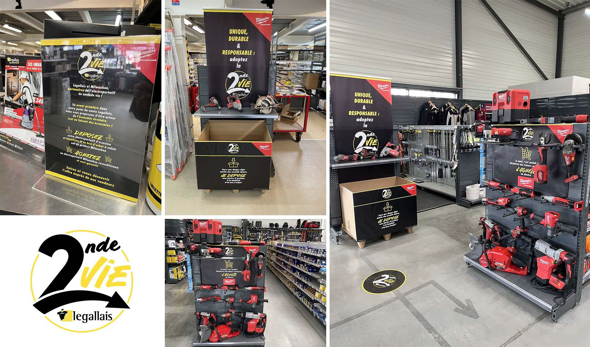 L' offre de produits de « Seconde Vie » de Legallais sera déployée dans l’ensemble de ses points de vente après une première phase de test réussie menée dans cinq points de vente Bretons au printemps 2025 en partenariat avec Milwaukee « Ce test a confirmé qu’il existait un véritable marché pour la seconde vie dans notre secteur. Il ne s’agit pas de remplacer le neuf, mais de proposer une solution complémentaire, économique et durable, qui répond à une attente croissante de nos clients », explique Aodren Cosnier, Directeur Marketing et Développement de LEGALLAIS. L’expérimentation portait sur la reprise d'outils Milwaukee moyennant bons d'achat et la vente d’outillage électroportatif reconditionné, exclusivement en magasin afin que les clients puissent voir et tester les produits.
