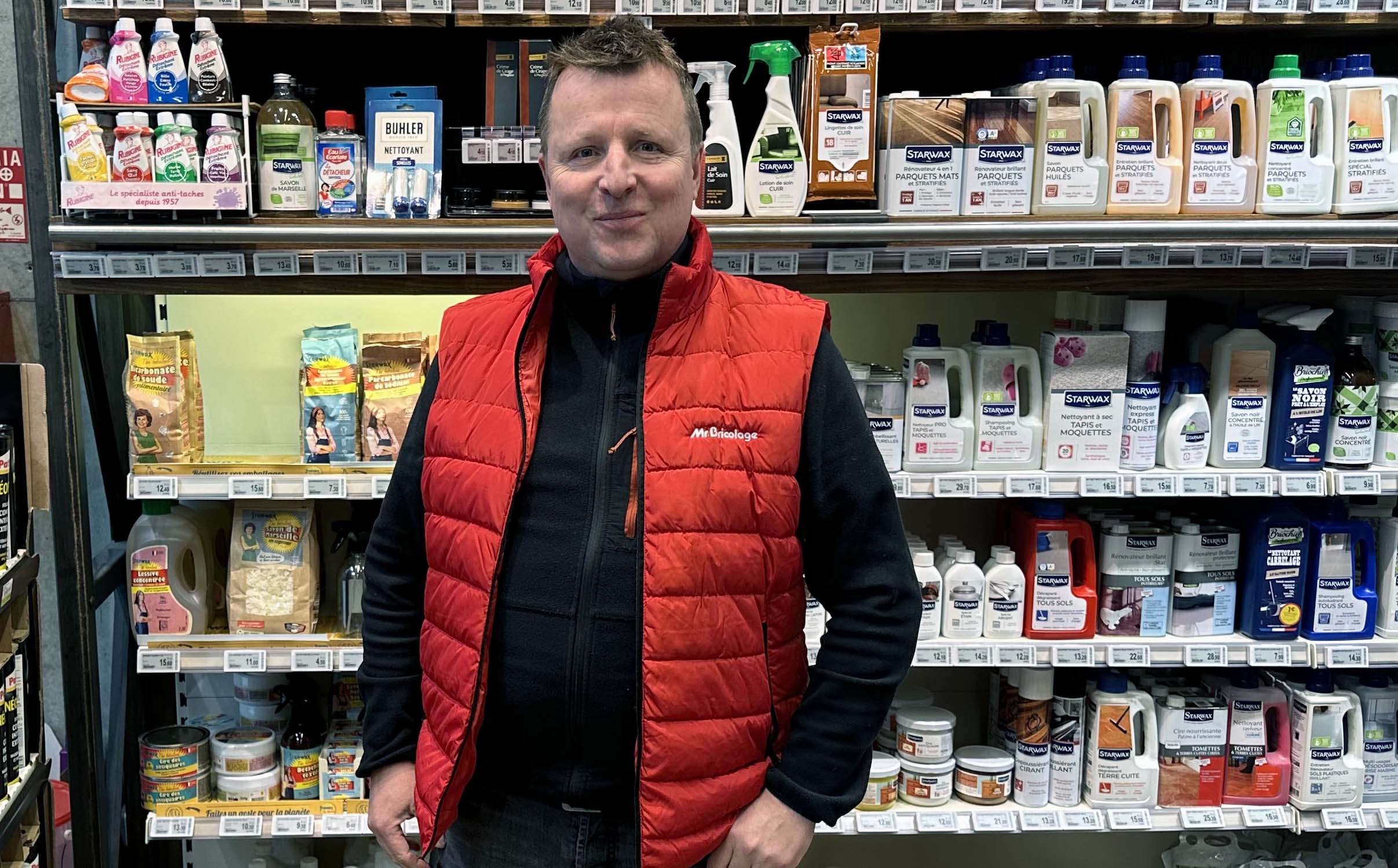 J’ai 54 ans, je suis un pur produit du bricolage. Entré comme apprenti à 20 ans chez Castorama, je suis passé chef de rayon et ai exercé diverses fonctions, avec l’objectif d’être un jour directeur de magasin. J’ai eu l’opportunité de rejoindre Mr.Bricolage en 1998. J’ai travaillé à Nogent-le-Rotrou (28) comme responsable de magasin. J’ai ensuite été directeur général d’un parc de magasins dans la région Ouest et me suis lancé en 2017 à la recherche d’un magasin. En rentrant chez Mr.Bricolage, c’était mon objectif. En 2019, avec ma compagne Delphine, nous avons ouvert le magasin situé à Saint- Laurent-du-Pont. Elle a d’ailleurs quitté son travail pour m’accompagner sur la partie comptabilité et administratif, ainsi que les RH.